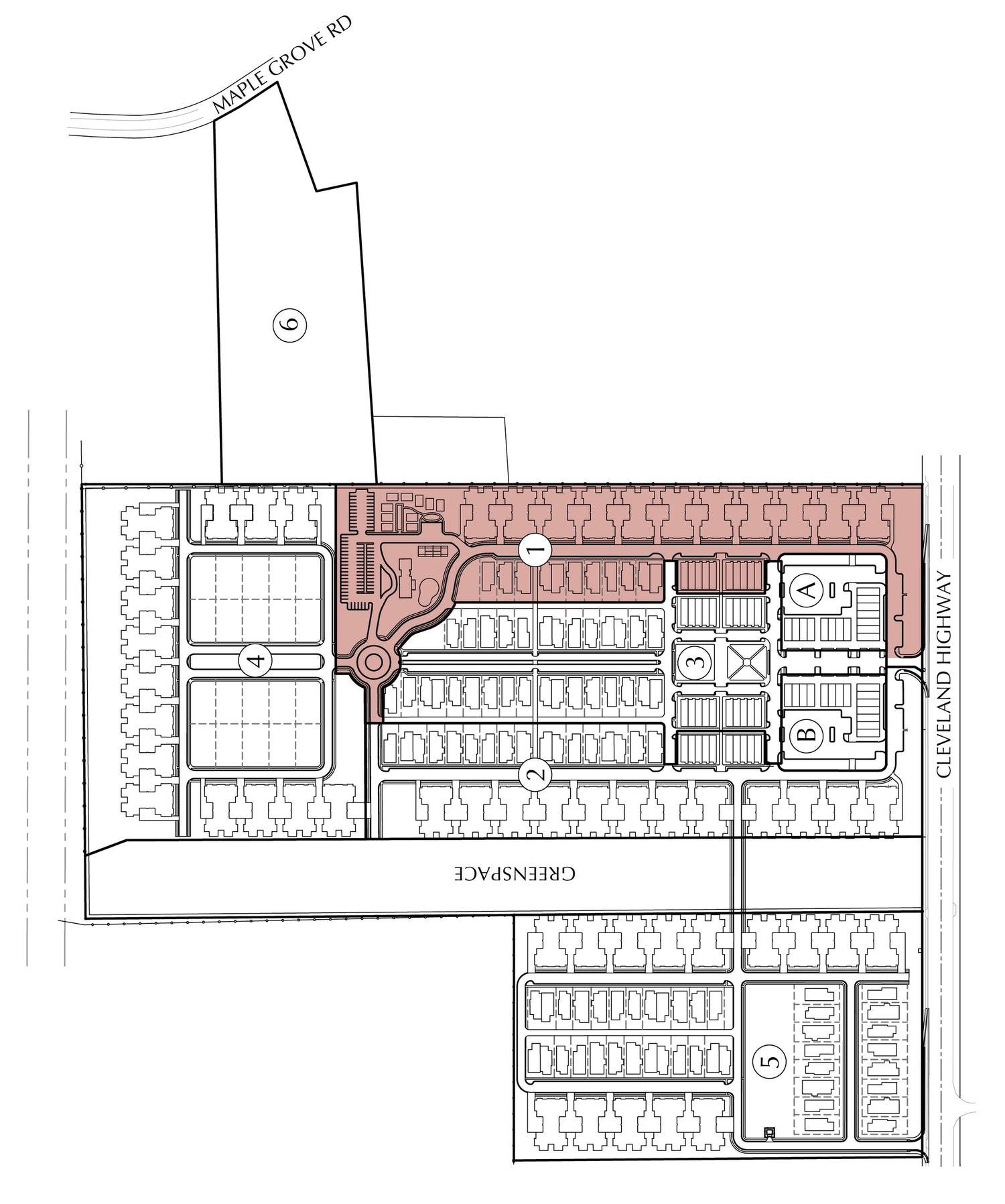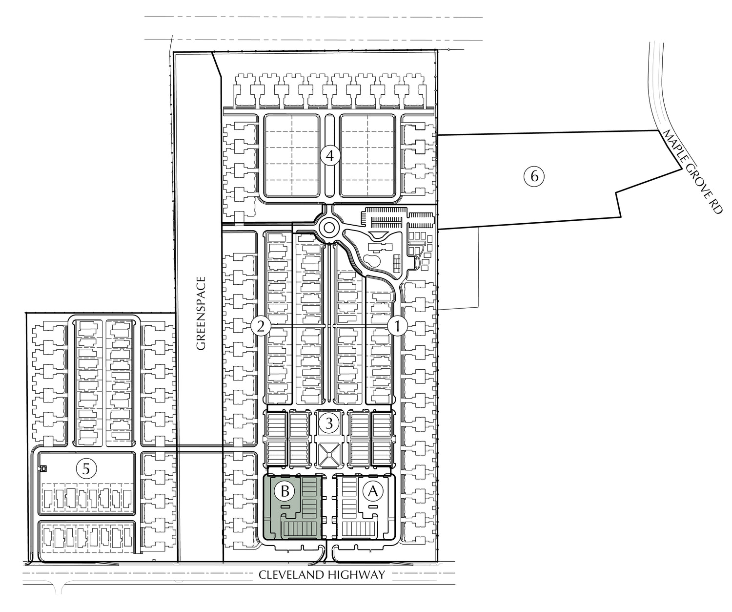 Phase 1 included the construction of quads, cottages, townhomes, and the renovation of the former farmhouse, which is now Patterson's Sales & DesignCenter. Phase 1 construction began in September of 2021, and was completed in the Summer of 2022.